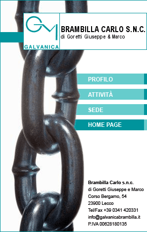 La GALVANICA BRAMBILLA CARLO SNC di Lecco opera dagli anni sessanta nel trattamento di catene e minuterie metalliche con diverse finiture: nichelatura, ottonatura, bronzatura e ramatura.I materiali trattati sono: ferro, rame, bronzo e zama. Il pregio della nostra produzione non si misura in termini di spessore dei rivestimenti, bensì si concretizza nell'assoluta purezza del rivestimento che i nostri bagni ammoniacali sono in grado di garantire, con un rapporto qualità-prezzo decisamente molto interessante. Un altro aspetto molto importante della nostra attività riguarda i tempi di consegna del prodotto finito e, anche in questo caso, siamo in grado di garantire efficienza e flessibilità. Infatti, è il cliente stesso, secondo le proprie esigenze, a stabilire i tempi di consegna, compatibilmente coi tempi di lavorazione richiesti. |